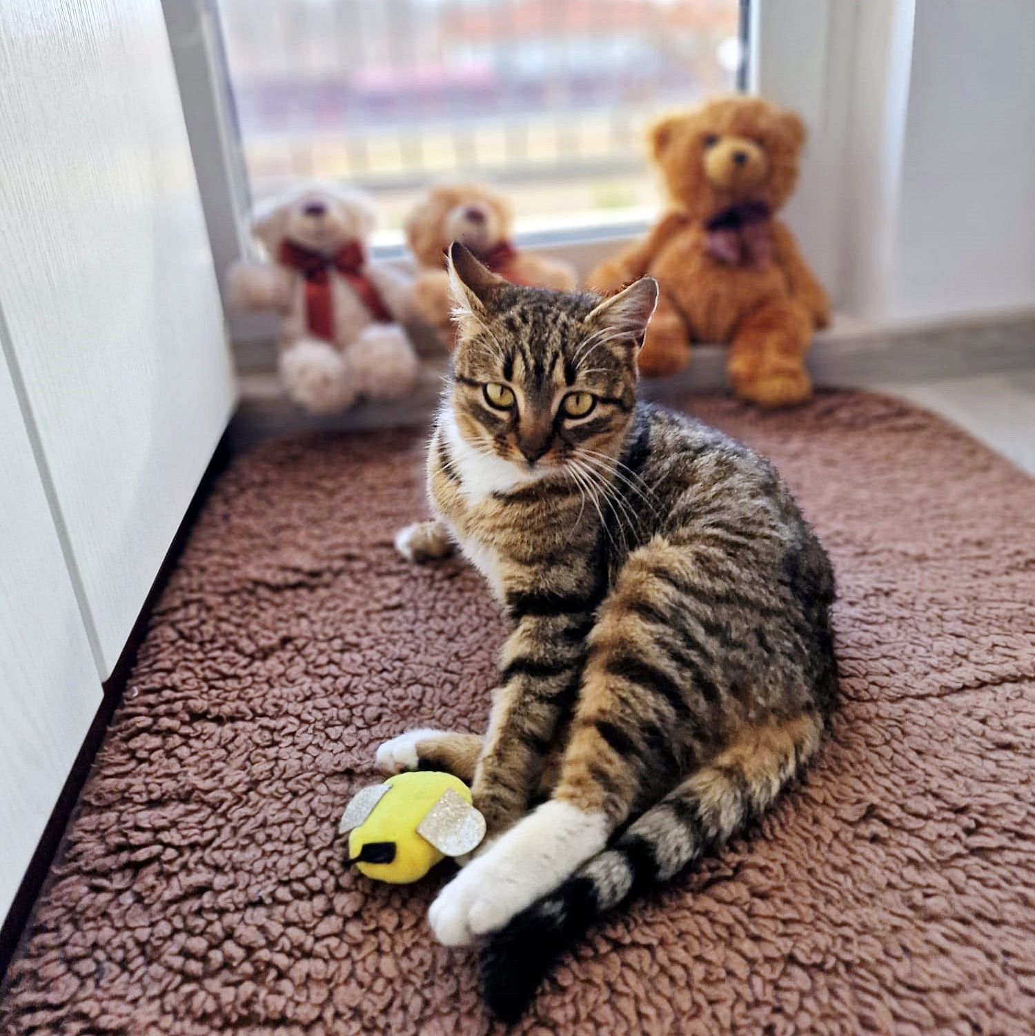 Unsere Berta ist ein liebes Mädchen und genießt das harmonische Familienleben. Für sie sind die Menschen das Wichtigste – und Futter - dann ist sie glücklich und zufrieden. Sie spielt gerne mit dem Bällchen und all dem anderen Spielzeug um sie herum. Berta liebt die Harmonie und wird es ihnen mit Schnurren danken.