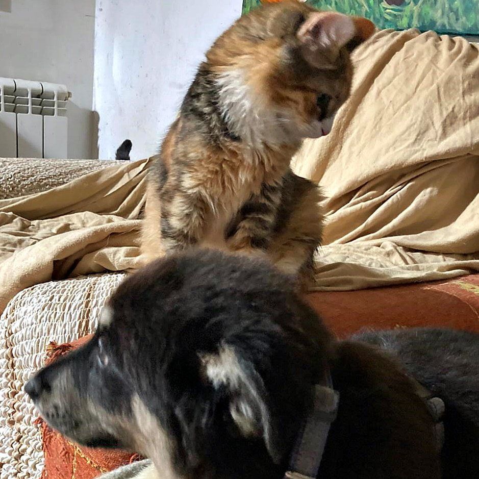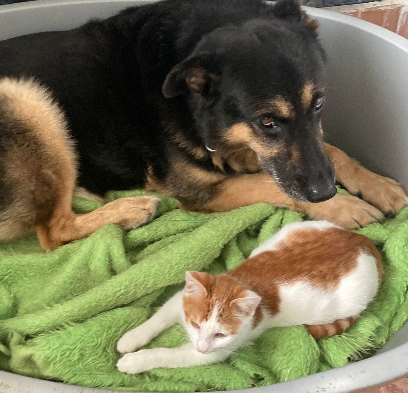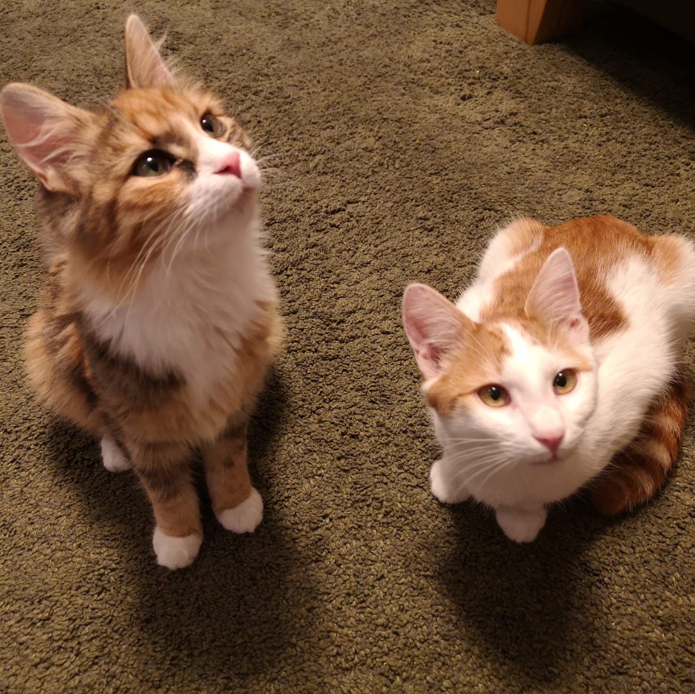 Beide wurden bereits im Tierschutz geboren und sie wuchsen dort in der Pflegefamilie mit anderen Katzen und Hunden auf. Sie schliefen mit im Bett, sie schmusten mit den Hunden und sie lernten auch, sich im Haushalt gut zu benehmen. So sind beide sehr gut händelbar und total zugänglich.