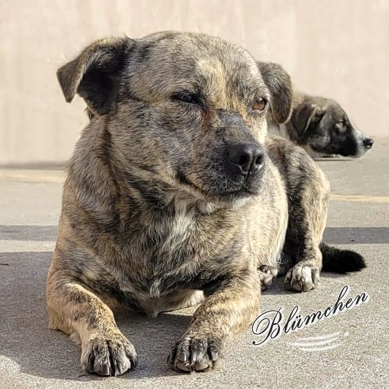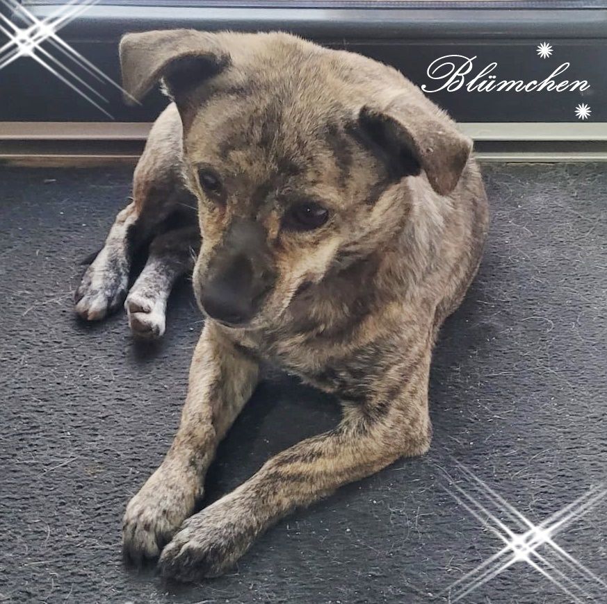 Blümchen ist tatsächlich einzigartig – einzigartig im Aussehen und einzigartig in ihrem fantastischen Wesen. So klein wie ein Dackel und doch zeigt sie das Herz eines Löwen. ❤️ So gütig und sanft ist sie, so anschmiegsam und fügsam. Blümchen ist der Inbegriff für eine liebe Begleitung, die ihnen das Leben lebenswert macht. Sie ist ruhig in ihrem Wesen und doch sehr gesellig und schmiegt sich super gerne an. Sie ist klein – aber nicht zerbrechlich, so kann man sie supergut händeln. Blümchen ist niemals ein Draufgänger – eher stellt sie sich bei Schwierigkeiten hinter sie und lässt Muddi managen. Dieses zeugt von absolutem Vertrauen in die Menschen. Dieses hat sie niemals verloren, denn sie hatte doch früher ein gutes Zuhause. Zuvor lebte sie in einem Haushalt mit angrenzender Werkstatt. Blümchen durfte überall dabei sein. Die Arbeiter aber neckten sie und machten ihre Späßchen mit diesem kleinen Mädchen. Eines Tages geschah Schreckliches. Plötzlich hatte Blümchen ein Brandmal auf der Nase und auch ihr rechtes Auge hat ein wenig abbekommen. Niemand hat gesehen, wer oder was es war. Wir können nur mutmaßen. Der Tierschutz half und nahm sie dann zum Glück auf -  in ihrer Pflegefamilie zeigte sie schnell wie außerordentlich herzlich und sozialkompetent sie ist. Blümchen wurde beim Tierarzt behandelt und auch das betroffene Auge wurde untersucht. Sie sieht gut! – aber doch ist ein kleiner weißer Fleck auf dem Auge geblieben – dieses stört sie aber nicht. Auch die Brandwunde auf der Nase ist gut verheilt und zum Glück ist ihr nichts weiter passiert. Nun ist sie einzigartig in jeder Hinsicht – ein wirklich liebes Mädchen für ein gemeinsames Leben. So sehnlichst wünscht sie sich ein eigenes Zuhause mit Sofa, Kuschelkörbchen und viele Schmuseeinheiten. Sie ist eine Genießerin, liebt das gemächliche Leben auf dem Land und gibt gerne Küsschen. ❤️ Sie liebt das Familienleben sehr, auch gerne mit anderen Hunden und älteren Kindern. Hier fügt sie sich bestens ein. So schließt sie schnell Freundschaft und ist auch überall gerne gesehen. Natürlich spüren auch Hunde ihr gutes Wesen, welches sie durch und durch verkörpert. Blümchen ist ein klasse Mädchen, die ganz sicher auch ihr Herz erobern wird. Schöne Spaziergänge, zusammen Lachen und rundherum das gemeinsame Leben genießen. Am Ende des Tages steht der gemeinsame Fernsehabend – das Blümchen wird wie selbstverständlich dabei sein. Ab nun immer gemeinsam und niemals mehr einsam. Blümchen wird ihr Leben mit Liebe füllen.