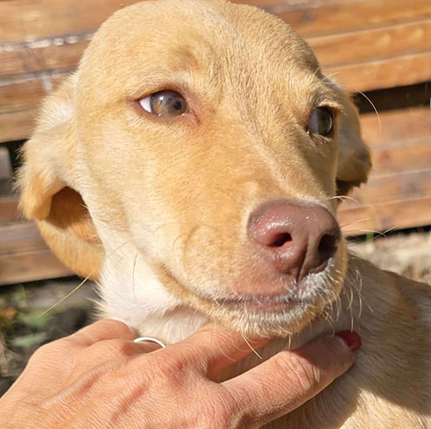 Das Näschen ist Schokobraun und die Lefzen ebenso. Seine Augen sind in Bernstein gehalten. Es scheint so, als sei ein Schokopigment in ihm vereint – selten zu sehen und hochbegehrt. Der Labrador Retriever in ihm ist nicht zu verkennen.