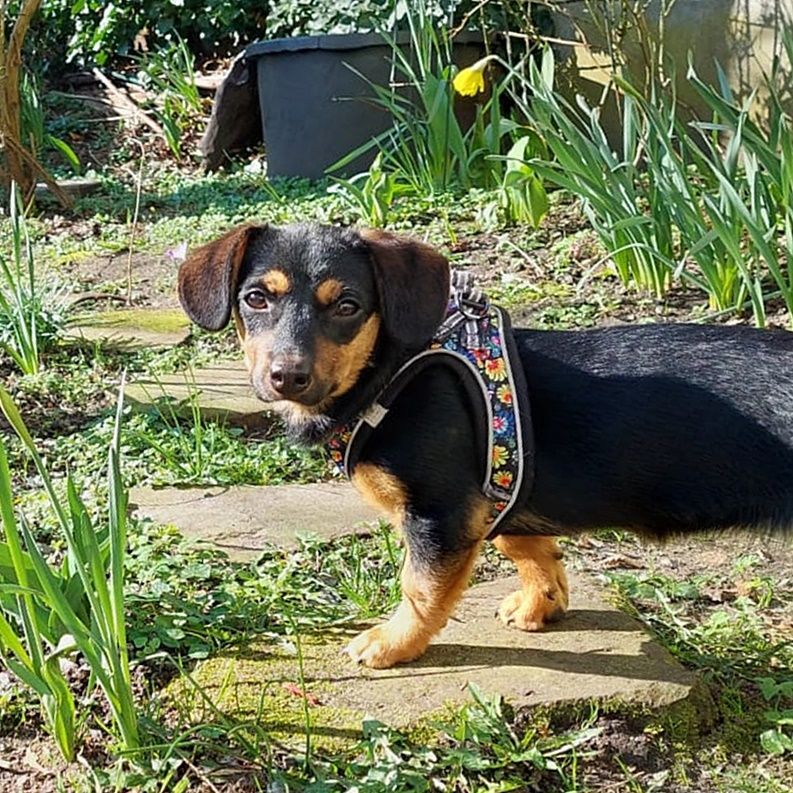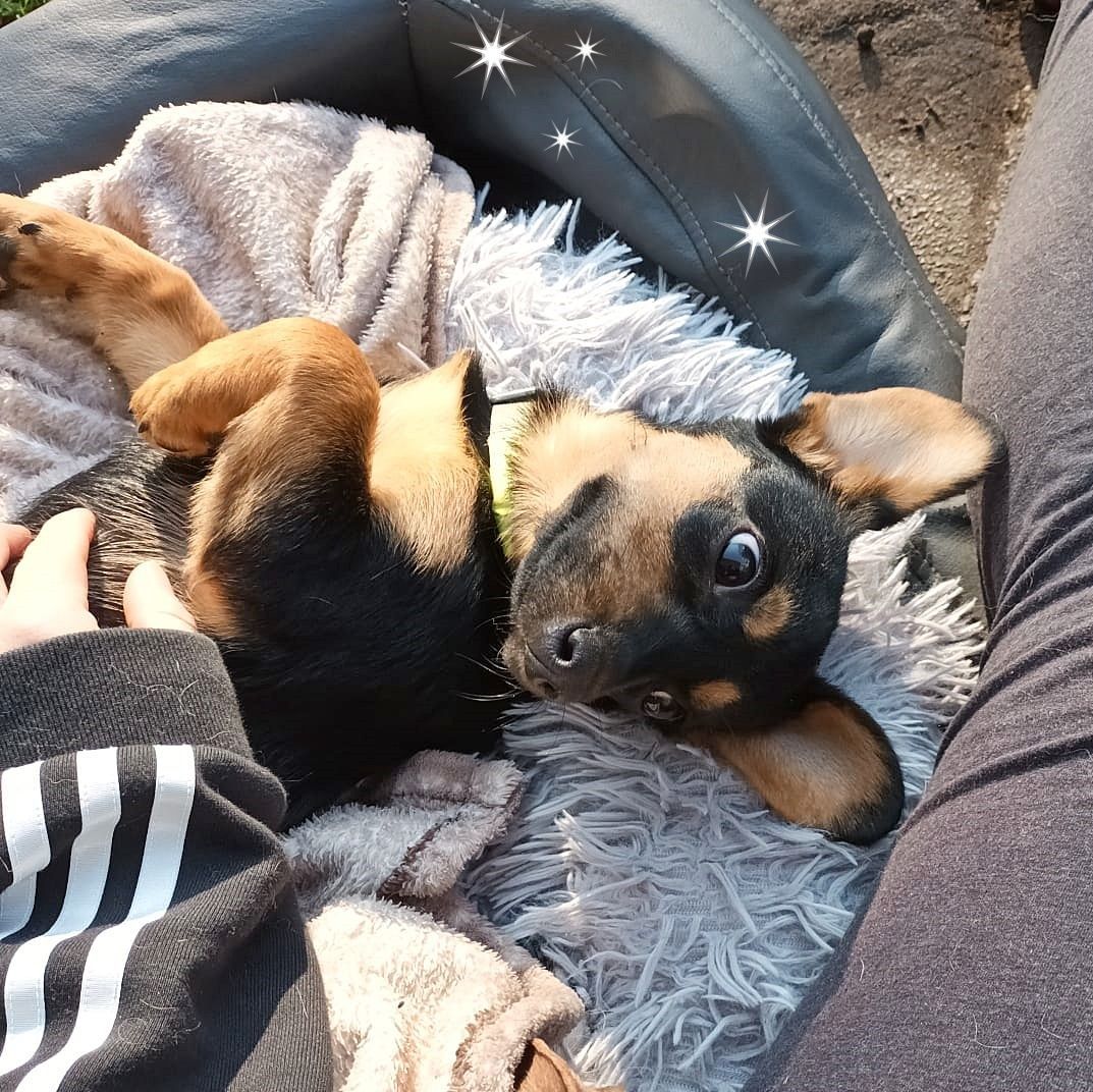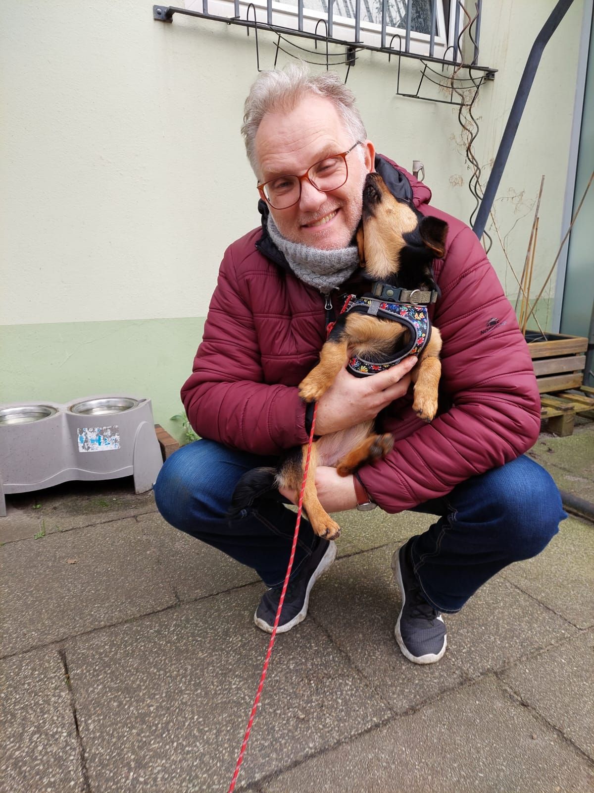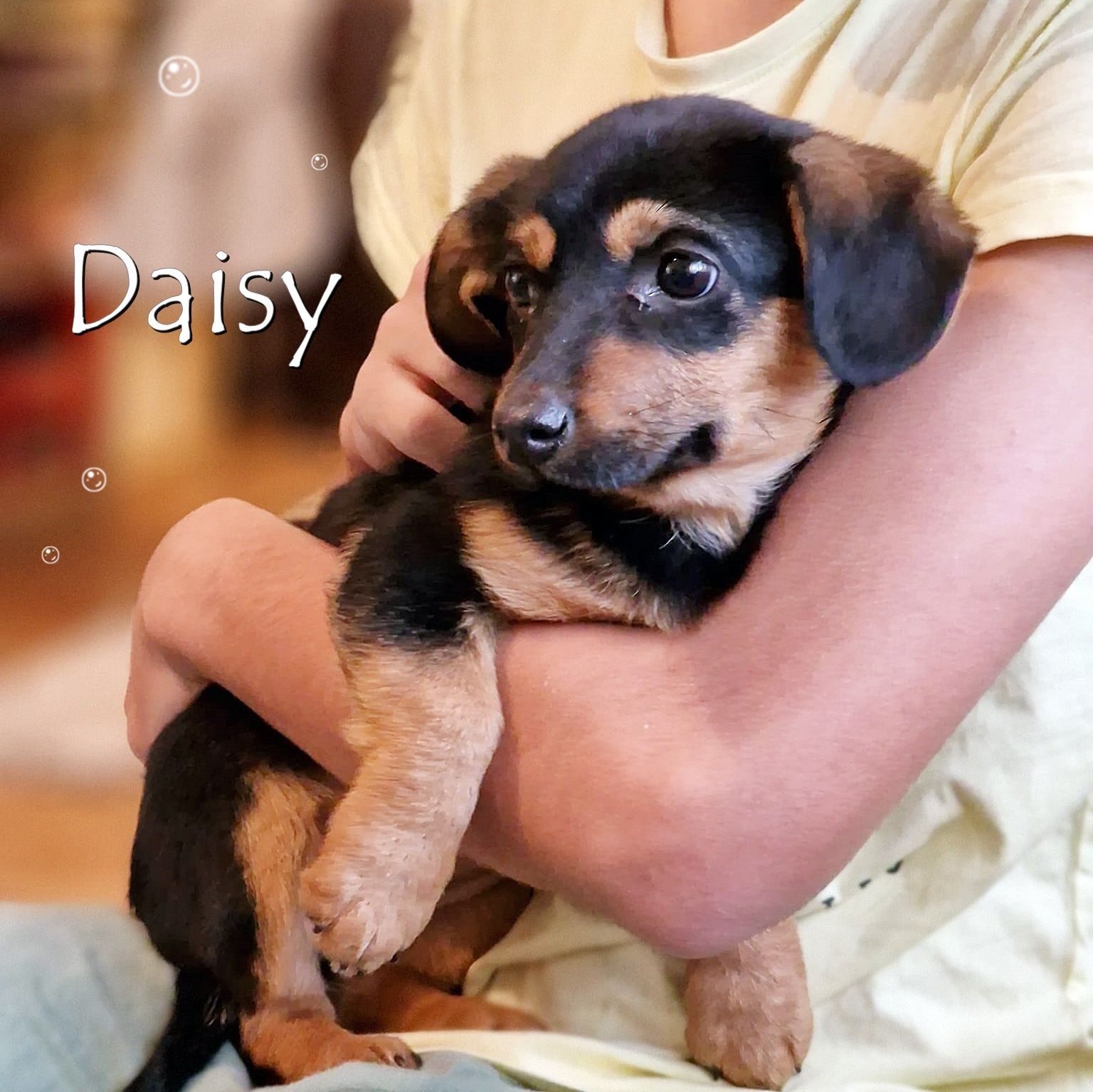 Daisy ist so klein wie ein Zwerg – aber hat die innere Größe mit dem Herzen eines Riesen. So herzlich, so liebevoll, so super sozial stapft sie mit ihren kurzen Beinchen durch das Leben. Sie ist ein wahrer Sonnenschein, denn sie trägt stetig ein verschmitztes Lächeln auf ihren Lippen.❤️ Daisy ist dem eines kleinen Dackelmädchen gleich, so fidel, so lustig und auch so liebevoll verschmust. Daisy kennt nichts Böses, so ist jeder gleich ihr Freund. Jeder, der sie zuvor gesehen hat, der erinnert sich gerne an sie. Daisy ist ein lustiges Mädchen mit dem Charme einer zauberhaften Prinzessin. Doch ein Sofahund, dieses ist sie nicht. Daisy möchte rennen, toben und lustig sein. Kleine Abenteuer in den Wald, eine Stippvisite am Sandstrand oder auch die Hundeschule ist für sie eine gern gesehene Abwechslung. Gut, dass sie gerne Auto fährt, so ist sie auch mit Leidenschaft ihr Copilot. An der Leine geht sie manierlich und voller Stolz. Auch stubenrein ist sie und weiß sich zu benehmen. Was wünscht man sich noch von sooo einem kleinen Zwergilein? – Genau… Küsschen verteilt sie im Übermaß.❤️