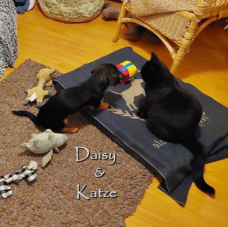 Mit Vaddi macht sie Homeoffice und mit Muddi studiert sie Kunststückchen ein. Daisy ist für jede Abwechslung bereit. Sie sprüht regelrecht Herzchen und ein jeder ist begeistert von ihr. Ihre Kurzen Beinchen sind flink wie ein Wiesel und dann lacht sie bei breitem Grinsen und fliegenden Schlapperohren. Diese kleine Madame ist einfach zuckersüß.