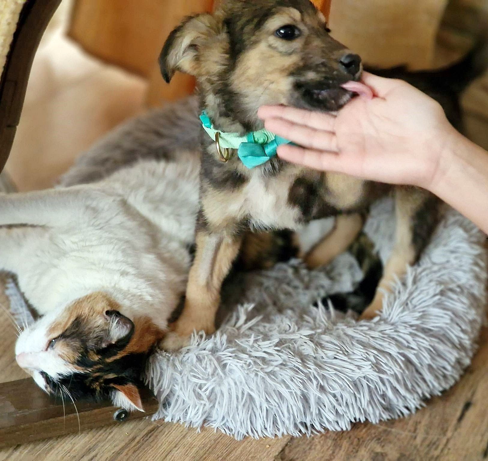 Eine kleine Zaubermaus ist sie – immer lustig und voller Freude- sie liebt das Leben und dieses natürlich gerne zusammen mit der ganzen Familie. Dabei ist ihr alles recht, Kinder, Hunde, Katzen, alles ist für sie das Normalste der Welt. Unsere kleine Diana ist so unbedarft und hat ein offenes Herz für jedermann. Super freundlich geht sie durch ihre kleine Welt und möchte nun mit ihrer eigenen Familie das Abenteuer Leben erobern. Mit ihr ist wohl alles möglich, denn sie ist offenherzig, super freundlich und unbedarft geht sie angstfrei ihren Weg. Sie strahlt förmlich Fröhlichkeit aus, lustig spielt sie, lacht und genießt das Leben. Liebevoll umgarnt sie alle Menschen und schleicht sich dabei schnell in ihre Herzen. Auch Kinder sind ihre liebsten Spielkameraden, diese kleine Zaubermaus ist dabei sanft zu ihnen und doch ausgelassen fröhlich wie ein kleines Kind. Dann lacht sie vor lauter Glück. Mit unserer Diana bekommt man ein tolles Familienmitglied, die sich zu einer herausragenden Hündin entwickeln wird. Sie ist fit, sie ist sozial und freut sich auf das Leben mit ihnen. Noch ist sie ein Winzling, aber sie entwickelt sich prächtig. Später wird sie eine wunderschöne Lady sein. Diana ist ganz typisch nach Schäferhund Manie eine treue Seele und ein weltoffenes Mädchen. Ihre besten Anlagen erkennt man schon jetzt sehr gut, denn sie ist rundherum zauberhaft in allem, was sie tut. Rennen, Spielen, Toben und viel Lachen, auch für das Leben lernen und im Familienverband glücklich sein. Dieses wünscht sich klein Diana so sehr. Auch Schmusen, Kuscheln und auch mal ruhen, sie ist eine, die mit ihrer liebevollen, offenen Art, alle Herzen im nu erobert. Unsere kleine Lady wurde in den Tierschutz gegeben, damit sichergestellt ist, dass sie ein sehr gutes Zuhause findet. Unsere Pflegefamilie ist rundum begeistert von ihr. Wir werden uns gerne für klein Diana einsetzen und ihr nun ein eigenes Zuhause suchen. Sie wird auch ihre Familie ganz sicher verzaubern.
