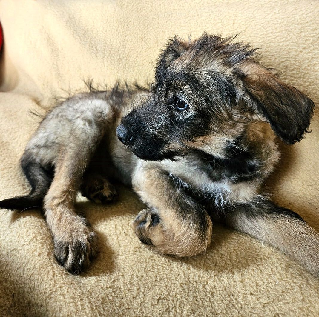 Unser Fussel ist der Inbegriff für Freundschaft.❤️ Er ist ein sehr lieber und angenehmer Junge, der das Zusammenleben liebt. Seine sanfte Art bezaubert und sein Sozialverhalten ist absolut hervorzuheben. Er sieht entzückend aus und er punktet schon durch sein Äußeres. Seine dunkle Nase, sein Augenaufschlag mit seinen warmherzigen Blicken, sein irrwitziges Zottelhaar, seine Ausstrahlung - alles an ihm ist einzigartig. Er ist so positiv und freundlich in seinem Wesen und doch sieht er herzlichst verwegen aus. Seine Mutter ist ein Wasserhund, doch der Vater ist uns nicht bekannt. Es wird aber ein sehr hübscher Kerl gewesen sein, wie wir an Fussel sehen. Fussel´s Haar ist wunderschön fluffig verwegen und sein fantastisches Aussehen ist rundum harmonisch. Er ist schon tatsächlich ein Vorzeigehund – und dieses auch schon mit seinen jetzt 4 Monaten. Er wird mal etwa mittelgroß werden und pendelt sich bei etwa 50 cm ein. Fussel ist ein kleiner Familienheld, der sich nichts sehnlicher wünscht, als seine aktive Familie zu begleiten. Spielen, Rennen, Toben und auch mal gemeinsam Unsinn machen. Fussel liebt das Spiel mit den Kiddys und gesellt sich gerne mit dazu. Gerne begleitet er sie auf Ausflügen in den Wald, über Wiesen und an die See. Fussel ist tatsächlich ein Goldschatz der eine tolle Familie verdient hat. Eine Familie, die er stolz begleiten und wo er mit ihnen gemeinsame Abenteuer - wie in Bullerbü - erleben darf. Fussel ist super intelligent, sportlich und hoch sozial zugleich. Er wird schnell lernen, was das Leben von ihm verlangt. Er lacht so gerne und freut sich auf die schöne Zeit mit ihnen. Da er sehr gut und schnell lernt, wäre sicherlich auch ein Hundesportverein eine gute Idee, um das Hundeknigge zu erlernen und die Freizeit zu gestalten. Gemeinsam als Team werden sie glänzen und mit Stolz wird er neben ihnen gehen. Fussel ist ein sehr dankbarer Junge und bindet sich schnell an seine Familie. Dazugehören ist für ihn das Allerwichtigste! Er ist unser kleiner Junge mit jetzt ca. 30 cm Schulterhöhe. Mit seinen jetzt 4 Monaten ist er welpentypisch gut entwickelt. Ein bester Freund, immer treu und auf das Familienglück bedacht. Der kleine Fussel ist aber nicht nur ein Teamplayer, er ist auch ein wunderschöner Junge mit herausragender Ausstrahlung. Sein verwegenes Haar passt so gut zu seinem Typ, man mag ihn niemals wieder loslassen. Seine Augen strahlen Wärme und Vertrauen aus – es ist wie das Fenster in seine Seele. ❤️Fussel ist so mega cool!