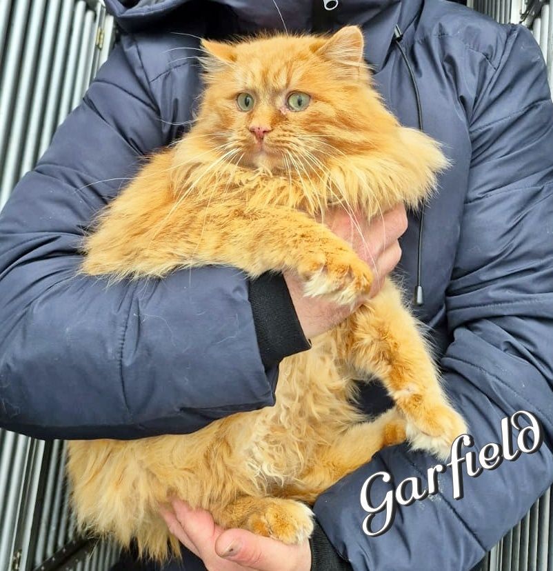 Mit anderen Katzen hat er keinei Probleme und gesellt sich wie selbstverständlich mit dazu. Aber die Menschen sind sein Augenmerk– er liebt sie seeehr. Eine ganze Familie möchte er glücklich machen und sonnt sich dann dabei im Rampenlicht. Garfield muss man einfach lieben.