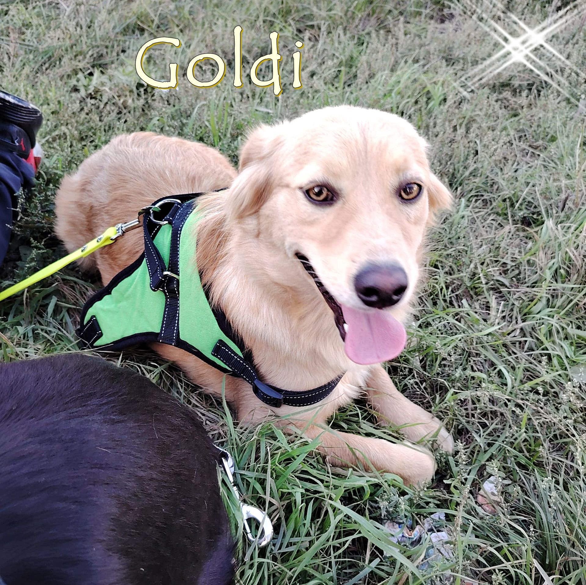 Goldi kennt die Leine, er fährt gerne Auto und brennt darauf mit ihnen zusammen allerhand Abenteuer zu erleben. Er ist ein Schatz, der gut zu händeln ist, denn Goldi ist mit etwa 15 kg perfekt gebaut.