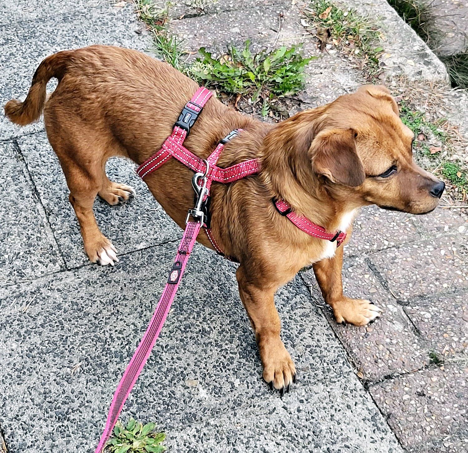 Gerne geht sie spazieren, aber liebt auch den Garten und schnuppert dort an allen Grashalmen, schaut den Schmetterlingen nach, oder räkelt sich in der Sonne. Sie ist rundum zufrieden, wenn sie sich einer Familie sicher ist. Dieses wird wohl nicht schwerfallen, denn so eine liebe Maus hat man gerne bei sich. Zusammen Lachen, Spielen und auch mal im Garten lustig Toben, kleine Spaziergänge mag sie sehr – bei allem ist Harmonie gerne mit dabei! Sie kennt die Fahrten im Auto und freut sich auf jeden Ausflug. Mit ihren ca. 30 cm Schulterhöhe und etwa 6 kg ist und bleibt sie ein kleines Mädchen mit großen Kulleraugen und einem Blick zum Dahinschmelzen. Harmonie ist eine tolle Maus, die ein beständiges Zuhause sucht. Sie ist sehr leichtführig und macht uns viel Freude. Lieber geht sie einen Schritt zurück und lässt die Menschen für sie managen – da ist sie ganz Lady und zeigt dabei ihre zarte und ruhige Art. Sie liebt die Menschen, möchte aber nicht bedrängt werden. Hunde die ruhig und sozial sind, werden von ihr gerne gesehen. Zuvor lebte die sanfte Harmonie in einer Familie, wo sie nicht zu ihrem Recht kam. Zu allem Überfluss wurde sie dann in den Tierschutz gegeben – doch sie konnte nichts dafür. Die Familie hatte wohl schlicht weg das Interesse verloren und so musste Harmonie leider umziehen. Es ist eine sehr traurige Geschichte.