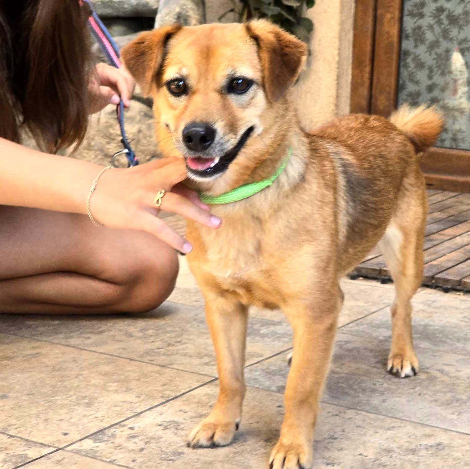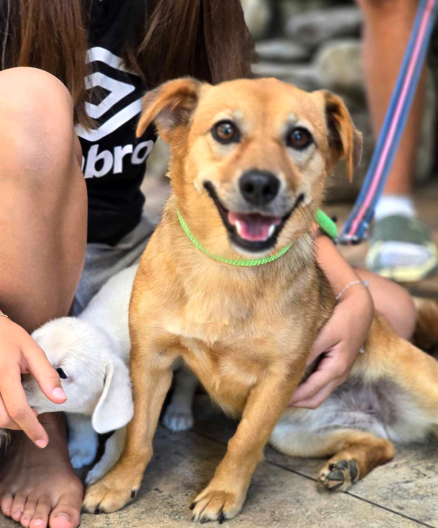 Wunderschön ist sie mit ihren dunklen Lefzen, ihr Lächeln wirkt dadurch wie pure Magie. Ihre haselnussbraunen, sehr freundlichen Kulleraugen betonen nochmals ihr gutes Wesen. Henrietta ist ein echtes Herzchen, die dazu gehören möchte. Sie ist voller Fröhlichkeit und lacht uns mit breitem Grinsen entgegen. ❤️ Gerne möchte sie Spielen, Lachen und lustig sein, mit ihnen durch den Wald stapfen und auch mal am Strand ein tiefes Loch buddeln. Das Bällchen holt sie gerne wieder und lacht dabei wie ein Honigkuchenpferd. Sie ist eine überaus herzensgute Freundin, die sie gerne bei Freizeit Sport und Spiel begleitet. Bei ihrer Büroarbeit legt sie sich dann unter den Tisch und träumt von all den schönen Dingen der Welt. Sobald man wieder Zeit für sie hat, ist sie bereit, für jedes gemeinsames Spiel mit ihnen. Abends dann liebt sie die Fernsehabende und freut sich dabei zu sein. Entweder kuschelt sie sich in eines der Körbchen zu den anderen Hunden – oder sie liegt einfach mit auf dem Sofa. Henrietta lässt sich sehr gut händeln und sie lernt auch schnell Neues, darum ist eine Hundeschule bestimmt eine tolle Abwechslung für sie. Henrietta misst angenehme ca. 35 cm Schulterhöhe und ist gerade 2,5 Jahre jung. Dieses ist das beste Alter, um neu zu beginnen. Zuvor war Henrietta ein vergessenes Mädchen. Niemand fand Zeit für sie, dieses ist so schade, denn von Natur aus ist sie ein echtes Schmusemädchen, so liebevoll herzlich. Sie verzehrt sich nach einem geborgenen Zuhause, da wo sie dazugehören darf. In ihrer jetzigen Pflegefamilie lebt sie mit Kindern, Hunden und Katzen im alltäglichen Leben mit der Familie zusammen. Henrietta genießt diese Dazugehörigkeit mit allen Sinnen. Wo sie auch steht und geht, Henrietta wird überall gemocht❤️. Sie ist ein Unikum und eine Grinsebacke mit viel Charme. Sie freut sich über alle Besucher, sogar der Postbote wird mit einem unwiderstehlichen Lächeln empfangen. Henrietta gehört einfach dazu.