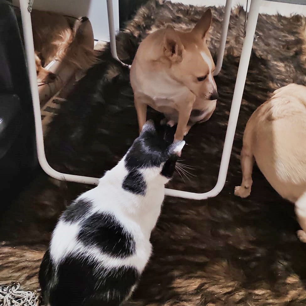Abends beim Fernsehen ist dann Kuschelzeit und er genießt dieses in vollen Zügen.. Henry ist sehr ausgeglichen und möchte, einer „von uns“ zu sein. Gerne wartet er auch mal, bis seine Menschen vom Einkauf wiederkommen. Zu gerne gibt er dann Küsschen und zeigt unmissverständlich, wiiiiie sehr er die Menschen liebt. Henry ist durch und durch ein kleiner Familienheld, der Herzchen sprüht.