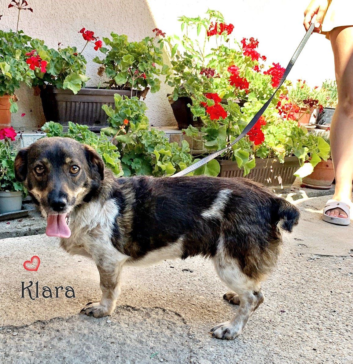 Nun ist sie unser dreibeiniger Star, aber dennoch ist sie nicht weniger sympathisch. Unser liebes Mädchen spielt, sie rennt, sie freut sich des Lebens und sie lacht für ihr Leben gerne. Die Liebe zu den Menschen ist ungebrochen und sie dankt es mit ihrer unglaublichen Freundlichkeit. Karla hat sich in ihrer liebevollen Pflegefamilie sehr gut integriert und man liebt sie dort sehr. Sie ist aufgeschlossen und lernt gerne Neues, Karla nimmt dankbar jedes Angebot an und ist mit Freude dabei. Natürlich kennts sie die Leine- aber Spaziergänge sollten nicht so lang sein sollte. Die kleine Klara ist die perfekte Begleitung für ein harmonisches und ausgeglichenes Leben. Sie strahlt so viel positive Energie aus. Ihr Sozialverhalten ist klasse und sie würde auch mit einer Katze das Zuhause in Harmonie teilen. Machen wir ihr Happy End perfekt? Dreibein, was macht das schon, denn Klara macht alles – Klara kann alles und Klara wird von jedem geliebt!