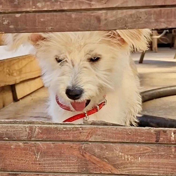 Unser Michel ist ein fröhlicher Schatz mit einem wunderschönen Aussehen. Sein helles,  Haar fällt lustig, verwegen und schmeichelt seinem aufgeschlossenen Wesen. Genauso lustig, wie er aussieht, so ist er auch in all seinem Tun. Viel Lachen, lustig sein und Küsschen geben, Spielen und rundum glücklich sein – dieses ist ganz nach Michels Art. Sein Haar wächst wunderschön und wird noch mehr Fülle bekommen und halblang werden. Er wirkt wie der Michel aus Lönneberga, verschmitzt und  immer mit einem Lächeln auf den Lippen. Er ist immer dabei und mischt immer mit, mitten in der Menge. Er liebt die Kinder, die anderen Hunde und auch Katzen sind ihm lieb und recht. Michel ist ein Gute-Laune Schatz und hebt die Stimmung, wo er auch ist. Kinderlachen und fröhliches Treiben, Michel ist mittendrin.