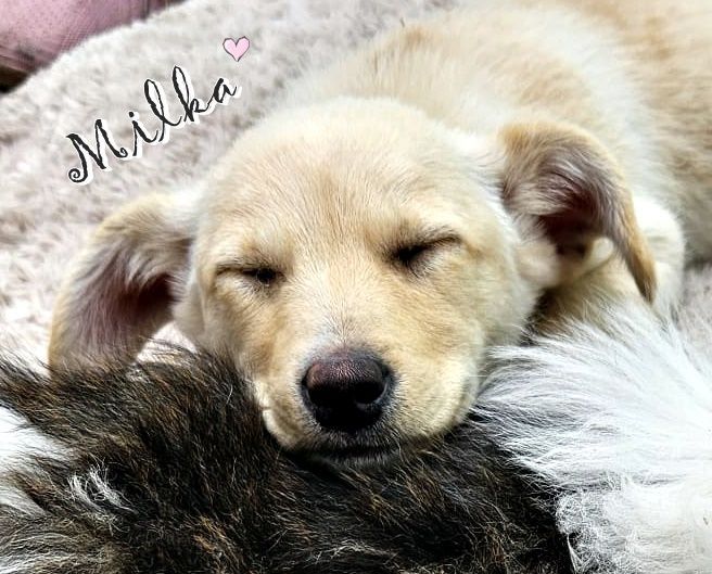 Klein Milka freut sich auf ein Familienleben mit viel Liebe und Zuneigung, da wo sie gemocht wird, heranwachsen und lernen darf.