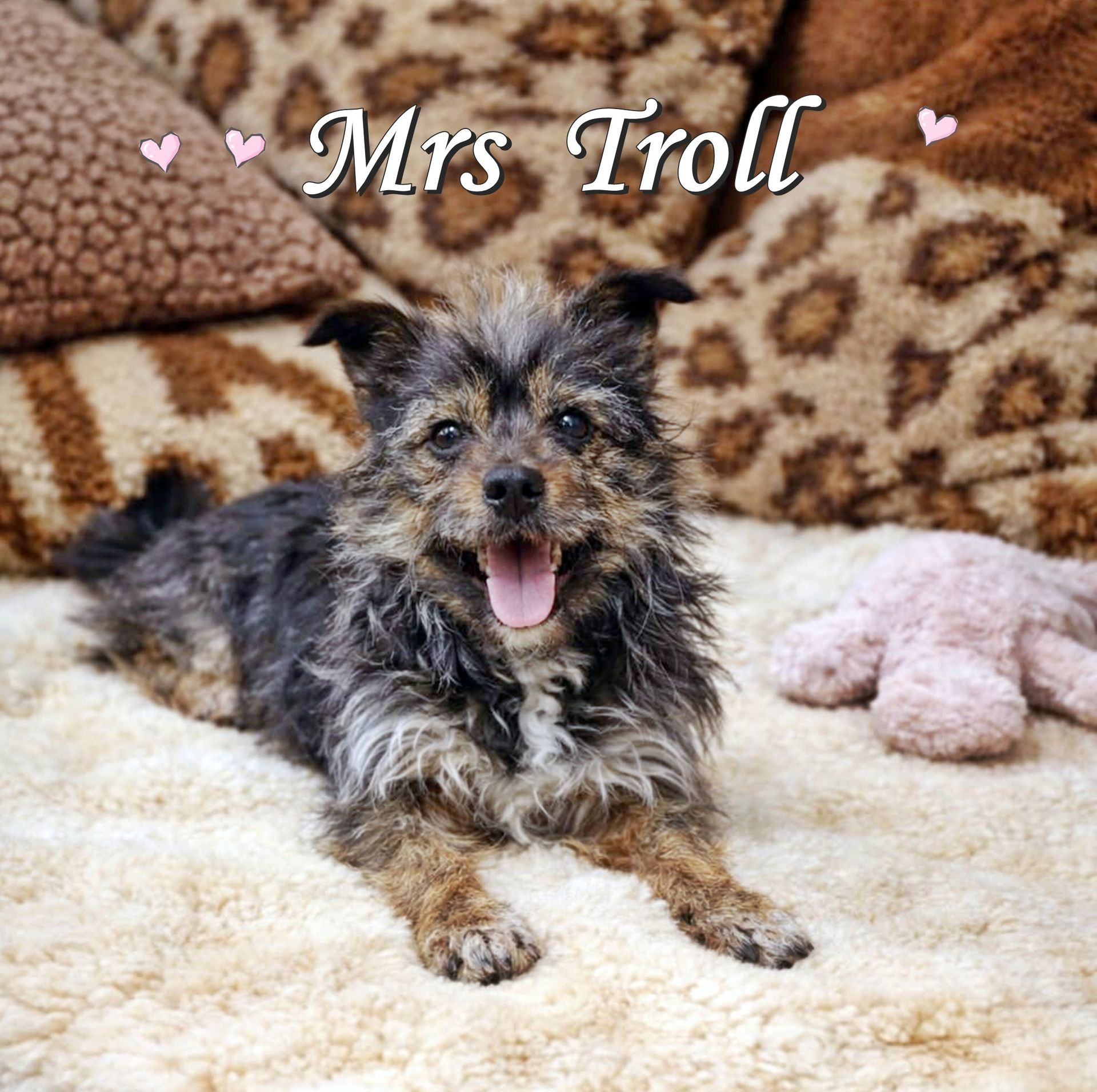 Putzmunter ist sie mit ihren 4,5 Jahren und tanzt sich super liebevoll und filigran in unser Leben. Die kleine Mrs. Troll ist so zuckersüß und bereichert jedes Familienleben. Sie lacht aus vollstem Herzen, denn sie ist glücklich dabei zu sein. Gemeinsam das schöne Leben genießen ist für sie ein großer Wunsch. Zusammen Spielen, Lachen und all die schönen Dinge machen, die ein kleines Hundemädchen so gerne tut. ❤️