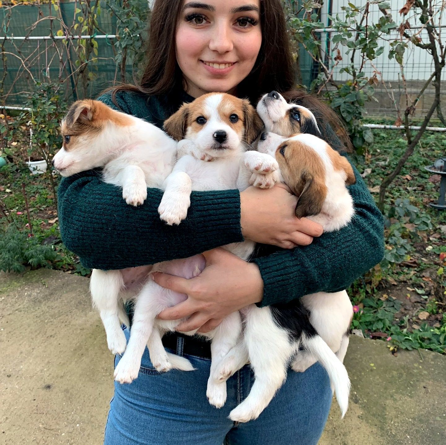 Donald, Daisy, Mikey & Minni sind wohl die süßeste Versuchung, seit es Hundebaby´s gibt. Ein gelungenes Potpourri, denn sie sind wunderschön und haben eine magische Anziehungskraft. Man muss sie einfach lieben. (Donald ❤️  unser Herzbube mit seiner wunderschönen Farbgebung und absoluter Nervenstärke), (Daisy ❤️  die sanfte Schönheit mit besonderem Liebreiz, anschmiegsam und liebevoll), (Mickey ❤️  ein Zwerg zum Verlieben, wie aus Marzipan gemacht, seine sanfte Farbgebung spiegelt seine besten Wesenszüge wider). (Die kleine Minni ❤️  unsere süße Flitzepiepe mitWitz und Temperament. Sie ist sportlich und fit für lange Wanderungen, Sport, Spiel und Spaß). Diese kleinen Zwerge und ihre Mama haben verdammtes Glück gehabt. Man hat sie -wohl wegen der Baby´s- ausgesetzt und sich selbst überlassen. Unsere liebevolle Pflegefamilie nahm sie bei sich auf und hat sie sogleich in ihr Herz geschlossen. Dort entwickelten sie sich hervorragend. Alle sind gesund, super aufgeschlossen und sehr sozial in ihrem Wesen. Sie haben viel gelernt, vom Baden in der Badewanne bis hin zum Staubsauger, selbstverständlich kennen sie andere Hunde gut und auch Katzen sind ihnen nicht unbekannt. Doch altersentsprechend möchten sie noch mit den Katzen spielen. Die kleine Bande ist mit ihren jetzt 4 Monaten genau in dem richtigen Alter um ein eigenes, schönes Leben zu beginnen.