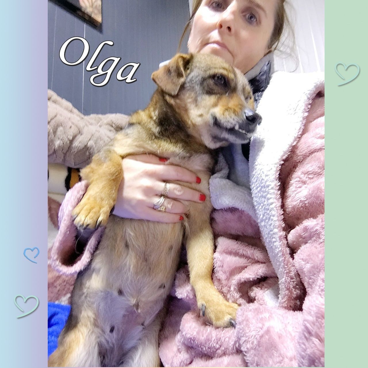 Es ist uns eine Herzensangelegenheit, für die kleine Olga ein Happy End zu suchen – eine gute Seele mit einem Herzen aus Gold – sehr liebevoll und anhänglich durch und durch.