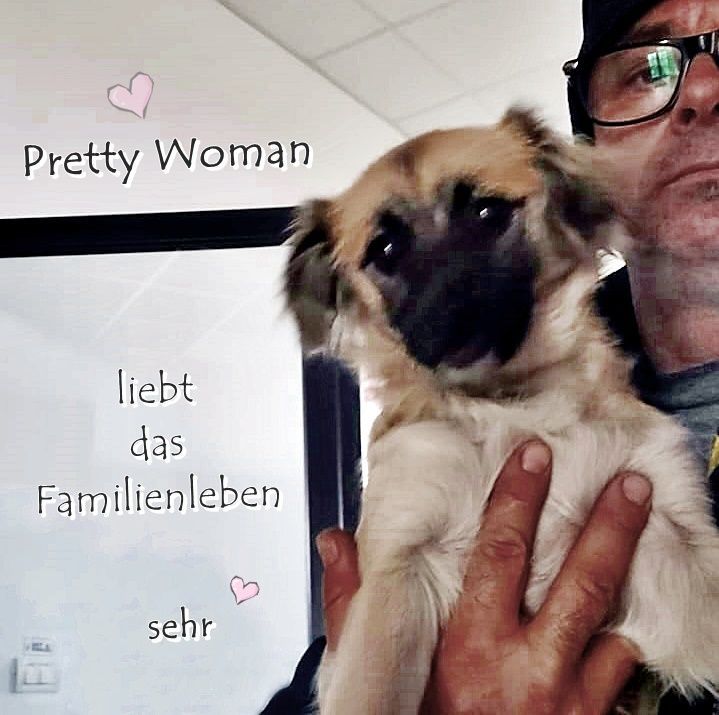 Ich, die kleine Pretty Woman habe immer Gute Laune und lache unübersehbar mit breitem Grinsen im Gesicht. Natürlich freue ich mich stets dabei zu sein – als einer von euch – immer als Familie beisammen zu sein. Nichts ist schöner als gemeinsam das Leben zu teilen. Spielen, viel Lachen, Faxen machen und auch Neues lernen nicht zu vergessen. Ich liebe gemeinsames Kuscheln und zusammen den Tag ausklingen lassen. Ein harmonisches Familienleben, dazu möchte ich gerne beitragen. Ich bin sehr leichtführig, denn ich achte sehr auf die Menschen und möchte dabei stets gefallen. Gerne bin ich in der Natur unterwegs, auf Wiesen, im Wald oder evl. sogar am Strand – dann mache ich vor Freude fast Purzelbäume, das Leben kann so schön sein. Abends gebe ich Muddi dafür ein dickes Bussi- es war mal wieder ein sehr schöner Tag. Ich, die kleine Pretty habe sehr viel Einfühlungsvermögen und kann mich auch sehr gut sanft und vornehm verhalten. Gerne ruhe ich auch in meinem Körbchen und genieße die Harmonie um mich herum. Besuch empfange ich stets freundlich und bin keiner der Kläffer oder gar Rüpel. Ich, die sanfte Pretty weiß genau, was zu tun ist, um dazuzugehören. Mit anderen Hunden verstehe ich mich bestens. Ich bin 10 Monate jung und mein Pflegefrauchen sagt: ich habe einen sehr guten Charakter. Katzen kenne ich aus meiner Pflegefamilie – doch sie laufen immer vor mir weg – dabei möchte ich sie nur Küssen!!!! Alles was um mich herum ist, dem begegne ich aufgeschlossen und freundlich. Das Leben ist so schön, nun möchte ich es mit meiner eigenen Familie teilen. Vormals wurde ich in den Tierschutz gegeben, denn meine Familie bekam wieder ein Baby - so musste ich in meine liebevolle Pflegefamilie umziehen. Ich liebe das Familienleben sehr und wünsche mir zur Weihnachtszeit ein eigenes Zuhause zu finden.