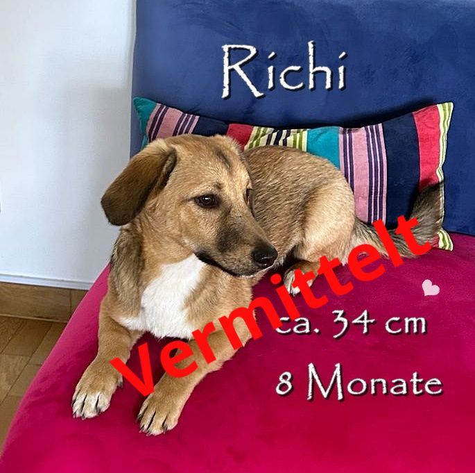 Richi zählt jetzt erst 8 Monate und dieses ist ein sehr gutes Alter, um neu zu beginnen. Er hat schon gut gelernt und auch sein Sozialverhalten ist super. Er brennt für das Familienleben und möchte diese durch die schöne Zeit begleiten. So gerne möchte er mit ihnen viel Lernen, Lachen und Späßchen machen. Ausflüge durch die Natur, Wiesen, Wälder und ans Wasser. Voller Freude und mit Spaß möchte er die Welt entdecken. Er wird sie dafür lieben und stolz zeigen, dass er zu ihnen und ihrer Familie gehört.❤️ Dieser tolle Schatz hat sehr gute Anlagen und wird in jeder Hinsicht punkten. Geistig, wie auch körperlich glänzt Richi und bringt dabei viel Freude. Niemals ist er ein Draufgänger oder Pöbler gewesen– nein, Richi ist eher sehr fein in seinem Wesen und hat liebliche Züge an sich, die in ganz besonders auszeichnen. In neuen Situationen ist er etwas zurückhaltend, sucht die Sicherheit seines Menschen und gemeinsam erkundet er dann gerne jedes neue Terrain. Dieses zeichnet die enge Bindung zu den Menschen aus. Er ist ein Teamplayer durch und durch. Nichts wünscht er sich mehr, als zu einem Familienverband dazuzugehören. Immer gemeinsam ist für ihn das Größte. Natürlich bleibt er auch mal kurz zuhause und wartet geduldig, bis die Haustür wieder aufgeht. Aber dann ist das Wiedersehen groß, voller Freude und mit Herzklopfen wird er sie begrüßen. Er ist ein kleiner Zwerg und wiegt derzeit ca 8 kg , somit ist er perfekt, um ihn in jeder Lebenssituation gut händeln zu können. Richi wird es ihnen leicht machen, sanft und doch fröhlich wird er sich in ihr Herz tanzen.