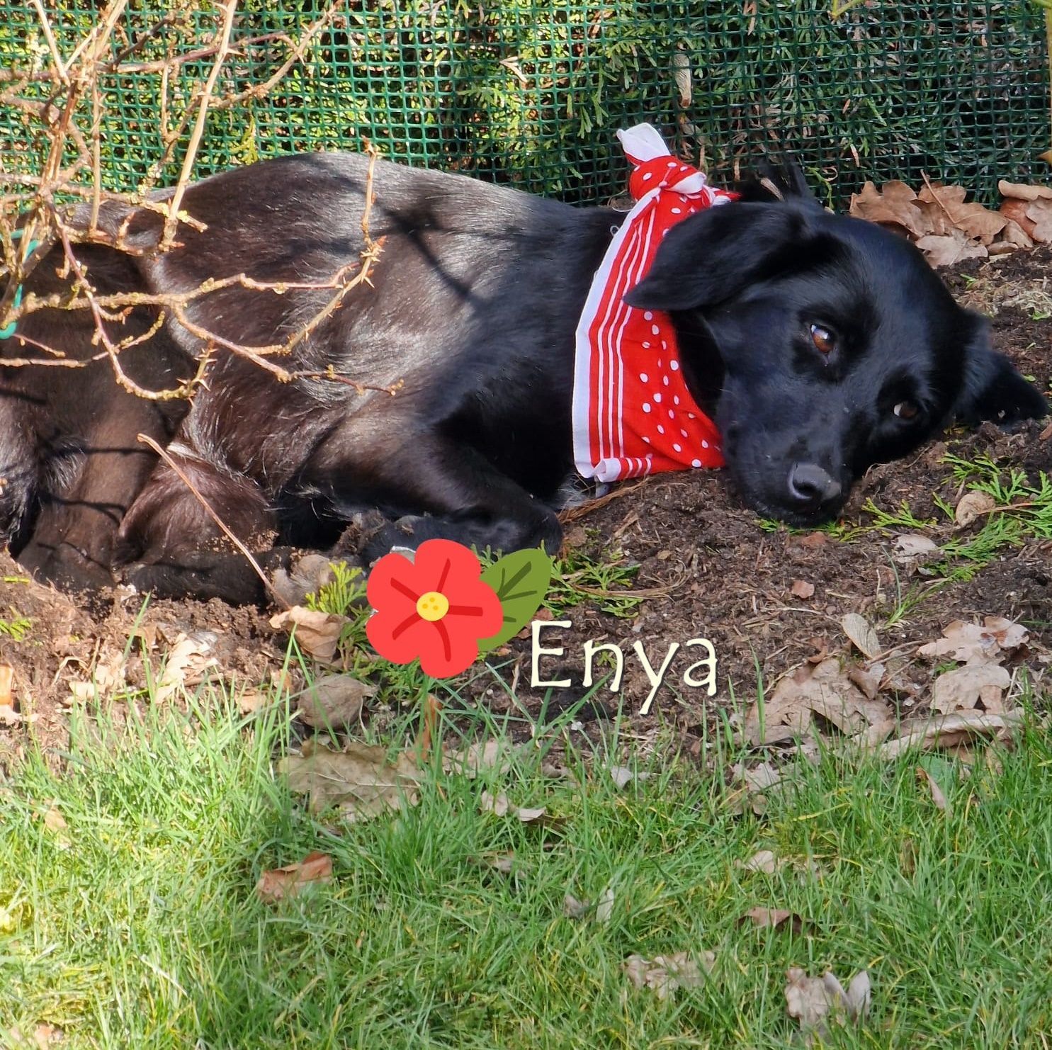 Man fand sie angebunden an einem Parkplatz, niemand suchte nach ihr – niemand schien sie zu vermissen. Der Tierschutz übernahm diesen armen Schatz und schickte sie zur Untersuchung in die Klinik. Ihr linkes Vorderbein hatte einen alten Bruch, der vormals nicht behandelt wurde. Es sah nicht gut aus. Wundintensivmedizinisch versuchte man alles – aber ihr linkes Vorderbein war so schwer verletzt, man konnte es nicht mehr retten, weitere Verletzungen hatte sie zum Glück nicht. Nun ist sie unsere dreibeinige Schönheit und strahlt wieder glücklich über ihr süßes Gesicht. Unser liebes Mädchen spielt sooo gerne, sie rennt, sie freut sich des Lebens und sie lacht für ihr Leben gerne. Die Liebe zu den Menschen ist ungebrochen und sie dankt es mit ihrer unglaublichen Freundlichkeit. Enya hat sich in ihrer liebevollen Pflegefamilie sehr gut integriert und versprüht dort Herzchen. Sie ist aufgeschlossen und lernt gerne Neues, Enya nimmt dankbar jedes Angebot an und ist immer mit Freude dabei.❤️ Natürlich kennt sie die Leine gut und freut sich über jeden Spaziergang. Auto fährt sie gerne, bleibt aber auch mal kurz alleine Zuhause, Enya ist die perfekte Familienhündin für ein gemeinsames und ausgeglichenes Leben. Sie strahlt so viel positive Energie aus. Ihr Sozialverhalten ist megaklasse und sie würde auch gerne mit einem weiteren Hund das Zuhause in Harmonie teilen.
