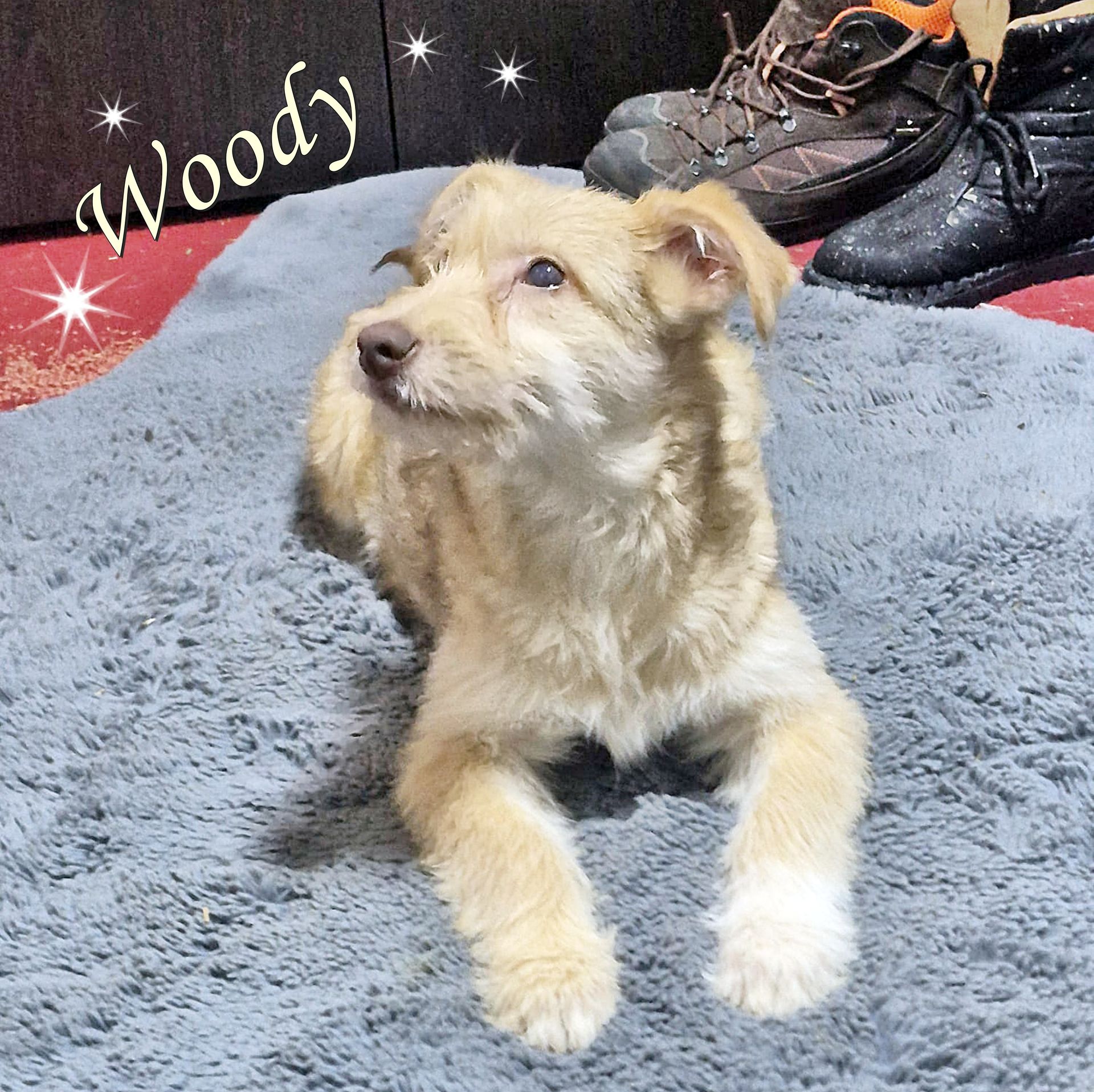 Seine Stupsnase, sein Augenaufschlag mit seinen warmherzigen Blicken, sein irrwitziges Zottelhaar, seine Ausstrahlung - alles an ihm ist einzigartig. ❤️ Er ist so positiv und freundlich in seinem Wesen und doch sieht er herzlichst verwegen aus. Seine Eltern kennen wir nicht, aber es müssen Terrier gewesen sein – Woody und Bruder Woozle sind im Tierschutz abgegeben worden – sie liefen ein paar Tage durch die Gärten der Anwohner und suchten eine Bleibe. Zum Glück hat unsere Pflegefamilie die beiden aufgenommen – so bleibt ihnen das Heim erspart.