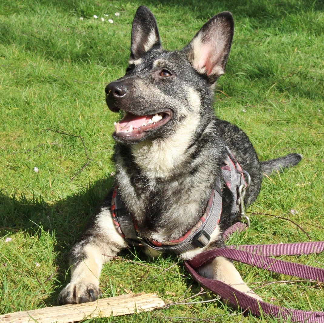 Yuna, dieser Name ist wie zugeschnitten für dieses freundliche Mädchen. (Yuna : die Freundliche). Ihre Ausstrahlung ist so herrlich, ihre harmonische Farbgebung spiegelt ihren guten Charakter wider. Herrliche Maserung und dazu ihre warmherzigen Augen. So beruhigend sind ihre Blicke- absolut ehrlich und rundum freundlich. Unsere Yuna fällt aber nicht nur optisch auf, ihr Sozialverhalten ist außerdem klasse. Sie ist ausgeglichen und auch gerne mal aktiv, sie ist sehr gelehrig und neugierig, wie es Junghunde gerne sind. Yuna liebt die Menschen sehr und sucht gerne die Gesellschaft und hält den Blickkontakt. Dieses sind beste Grundvoraussetzungen, um eine perfekte Begleithündin zu werden, die den Menschen mit Wohlwollen folgt. Gemeinsam in sozialer Partnerschaft möchte sie die Welt entdecken. Spielen, Toben, Rennen, Lachen und so manches Späßchen machen. Neue Abenteuer gemeinsam bestehen und sie wird mit ihnen durch Feld, Wald und Wiesen gehen. Yuna geht vertrauensvoll an ihrer Seite. Sie ist sehr liebevoll, anhänglich und verschmust, all dieses tut sie mit Leidenschaft. Ein Verein für Hundesport wäre eine interessante Sache, denn da findet sie schnell neue Freunde zum Spielen. Yuna wird ihr Leben mit Hingabe teilen und abends dann müde, aber glücklich in ihr Körbchen sinken. Sie ist ein tolles Mädchen, die ihren Menschen bedingungslose Liebe und Vertrauen schenkt. Küsschen und Liebkosungen werden von ihr gerne verteilt und sie ist soooo gerne immer dabei. Ihre klaren und überaus treuen Augen haben einen Blick, der uns dahinschmelzen lässt. Sie ist schon tatsächlich etwas Besonderes. Yuna misst etwa ca. 37 cm was einem Mini Schäferhund gleichkommt. Sie ist schon tatsächlich etwas sehr Besonderes.