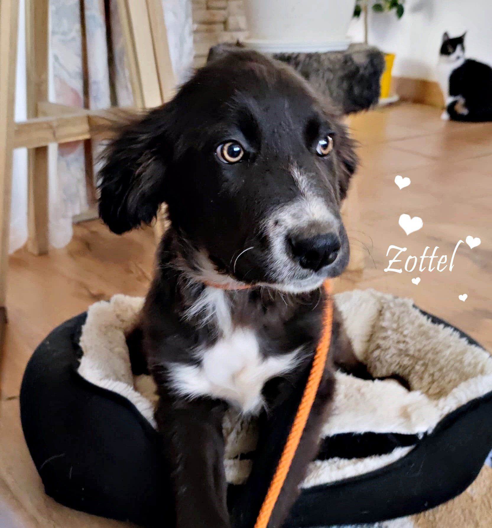 So herzlich wie er selber ist, so herzlos ist dennoch seine Vorgeschichte. Zusammen mit noch 3 weiteren Welpen wurde er in einem Karton ausgesetzt. Warum? – dieses wird wohl immer ein Geheimnis bleiben. So ein liebevolles und sozial angebundenes Baby, wie es Zottel ist, hat doch wirklich einen sehr guten Start verdient. In seiner Pflegefamilie wird er von allen sehr geliebt und hier wächst er harmonisch mit Kindern, Katzen und anderen Hunden auf. In seiner Entwicklung ist er welpentypisch gut entwickelt und er macht uns Freude auf ganzer Linie. Ob sich in ihm ein Labrador versteckt? Sein Aussehen und sein gutes Wesen machen es sehr wahrscheinlich. Den Ausflug zum Tierarzt für die Impfungen hat Zottel mit Begeisterung absolviert – er hat keine Ängste und der Tierarzt ist bereits sein bester Freund. Der kleine Zottel ist offen für Neues und meistert souverän jede ihm neue Situation. Selbst im Auto fährt er gerne mit, denn mit seinen Menschen würde er bis ans Ende der Welt reisen. Gemeinsam möchte er “die Welt erobern“ – immer an der Seite seiner Familie. Natürlich bleibt Zottel auch mal kurz alleine Zuhause, dann ruht er und wartet genügsam bis seine Leute wieder heimkommen. Dieses ist für unseren Zottelbären kein Problem, er lernt auch täglich Neues dazu. Seinen Hundeknigge wird er mit Bravour absolvieren, denn er ist sehr lernfähig. Dieser kleine Herzbube wird ganz sicher ihr Herz erobern. Sanft und liebevoll wird er sie mit seinen magischen Augen ansehen – bitte bitte – lass Zottelbärchen bei dir einziehen.